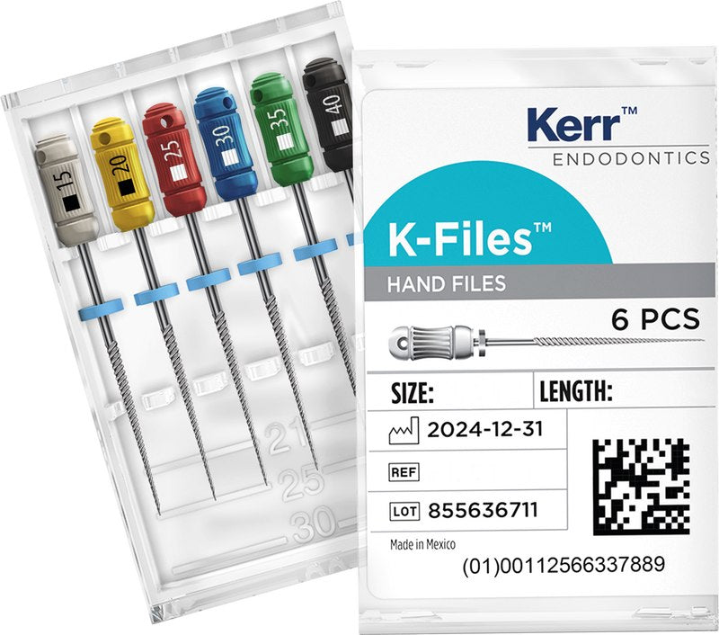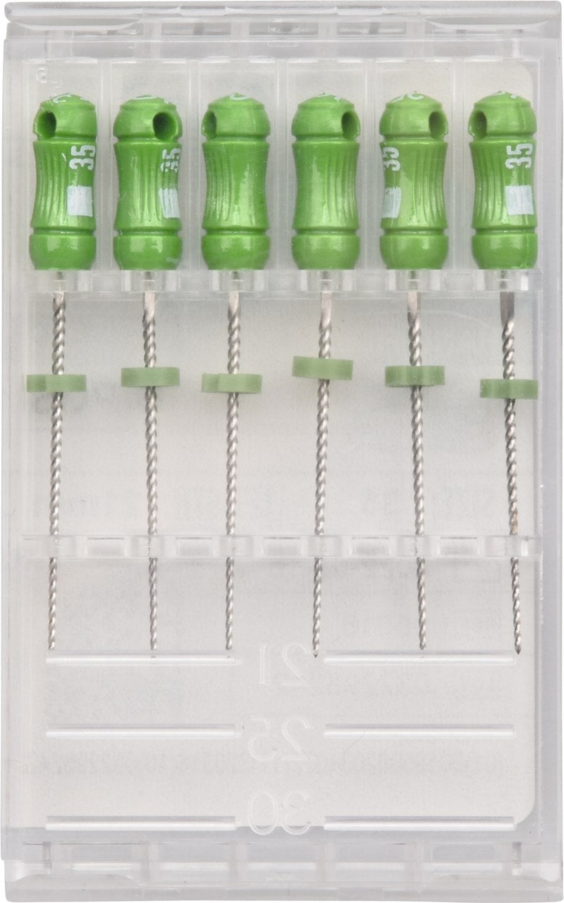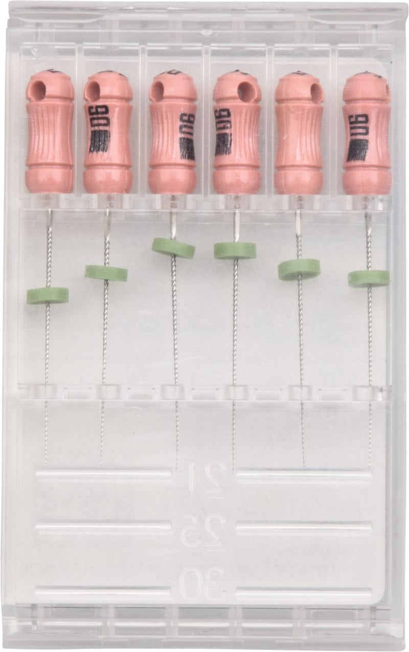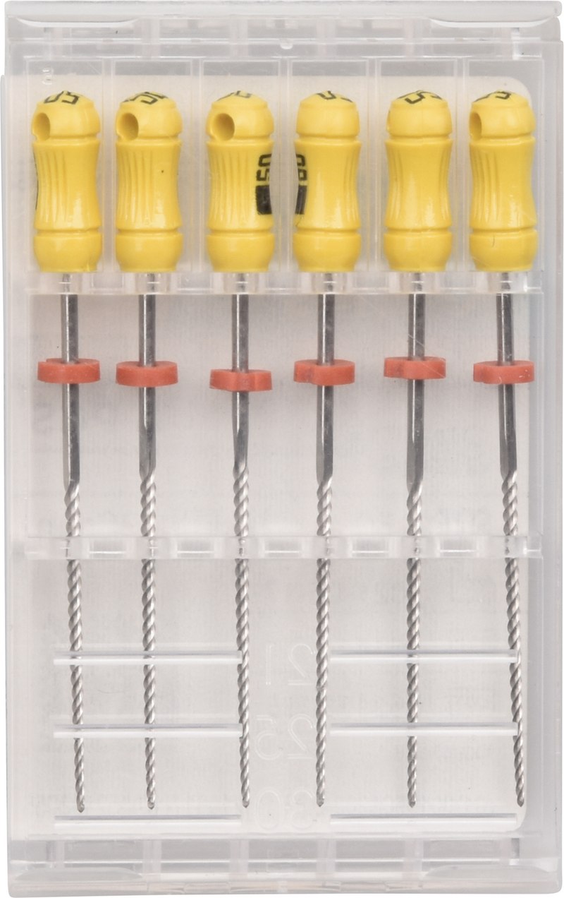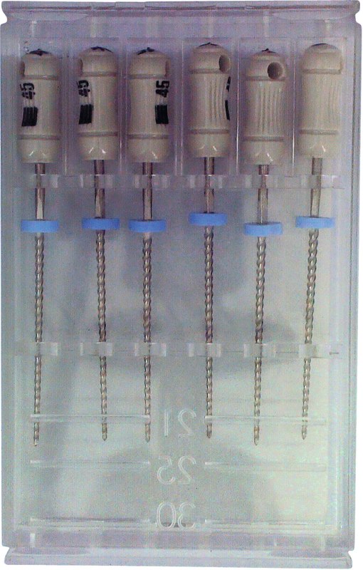 Die K-Feile ist die stärkste unter den Handfeilen mit geringem Bruchrisiko. Mit K-Feilen können Obliterationen wesentlich einfacher überwunden werden.