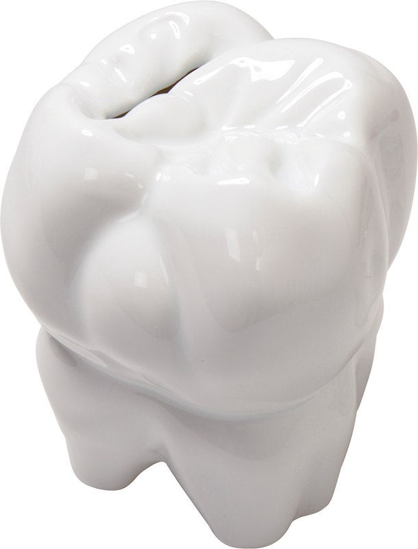 Hochwertiges Porzellan mit Schloss und Schlüssel im Zahnboden. Originell für die Rezeption, dekorativ und nützlich: Kaffeekasse, Telefonkasse, zum Ansparen einer „Praxisfete“.