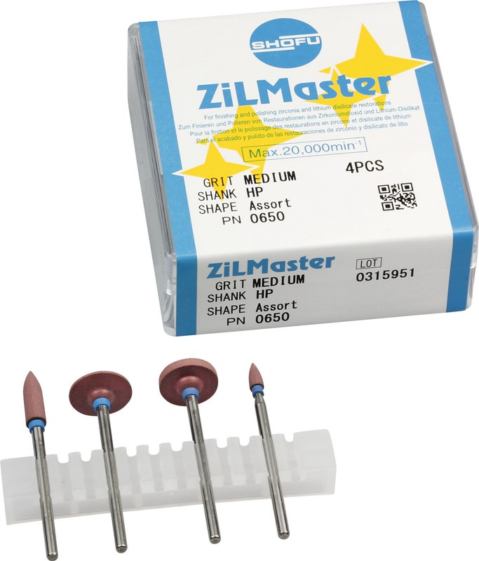 Das Drei-Schritt-Poliersystem mit diamantierten Instrumenten glättet die Restaurationen, entfernt beim Konturieren entstandene oberfächliche Kratzer und poliert auf Hochglanz. ZiLMaster ist in verschiedenen Formen und Schafttypen zur extra- und intraoralen Anwendung erhältlich. Systematische Politur von Restaurationen aus Zirkoniumdioxid und Lithiumdisilikat.